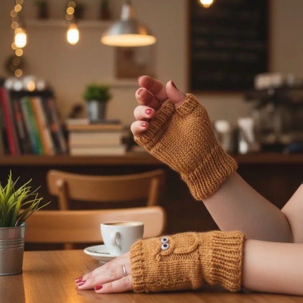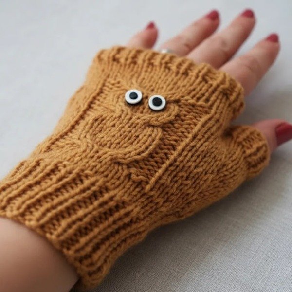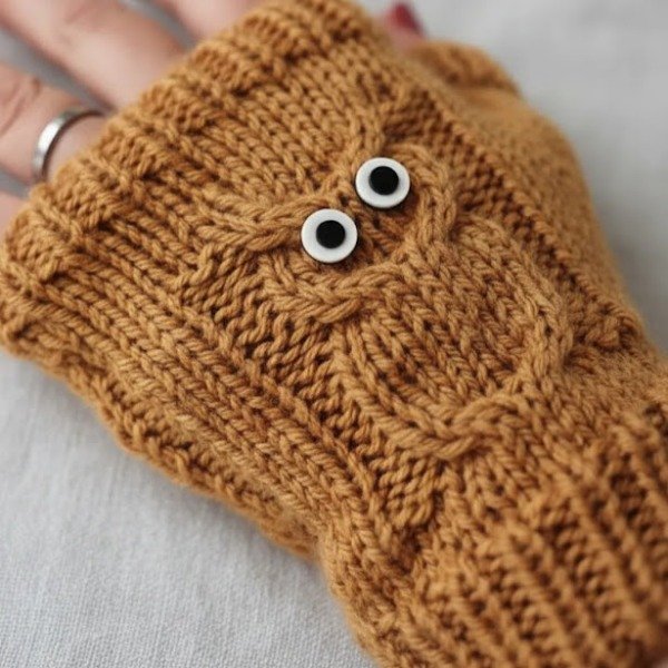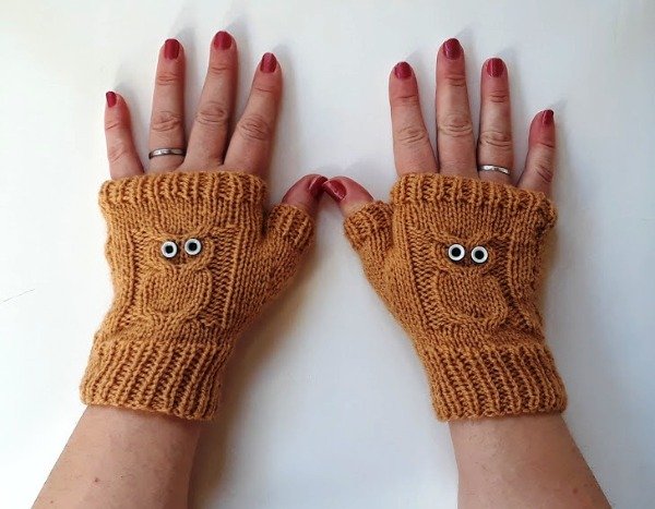 Mitones tejidos a mano en cashmilon suave. Con motivos de lechuzas. Medidas: 15cm de largo, 8cm de ancho.