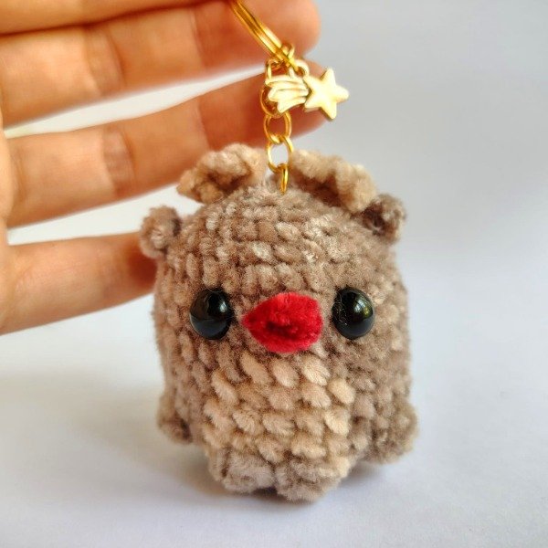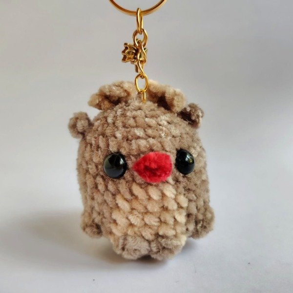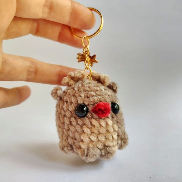Llavero amigurumi de tierno renito navideño, confeccionado con hilo de chenille suave. Ideal para las llaves, decorar bolsos y mochilas o el árbol de navidad. Medidas del llavero: 10.5 cm x 4.5 cm.