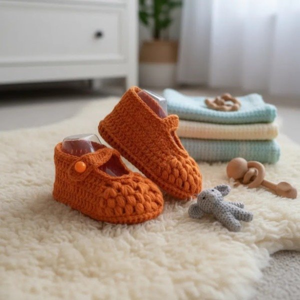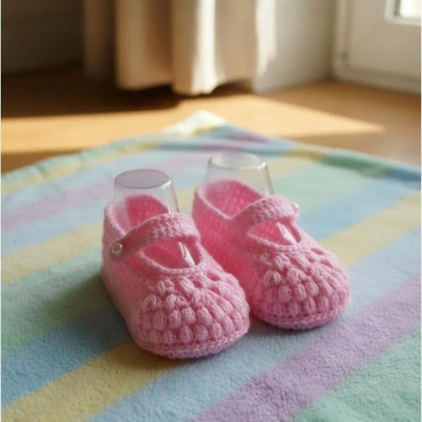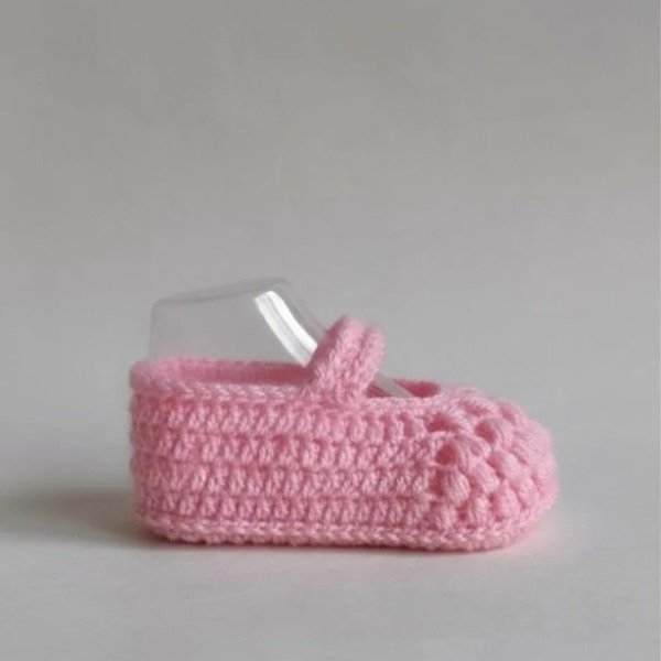 Zapatitos para beba tejidos al crochet en algodón. Medidas: 9cm de largo x 5cm de ancho. Varios colores.