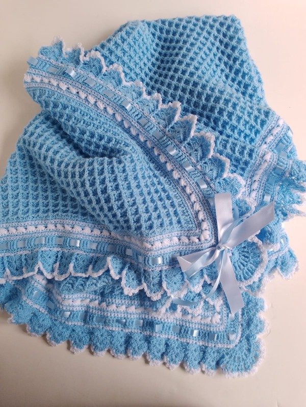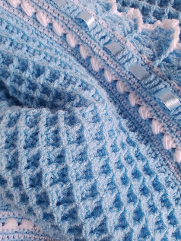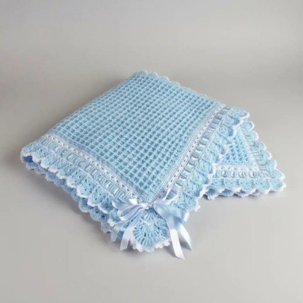 La Mantilla Manta Bebé Tejida Crochet Invierno celeste de La tiendita de Nidia es perfecta para mantener a tu bebé abrigado durante los meses más fríos. Esta manta tejida con material Cashmilon suave mide 1.05m x 1.05m y es ideal para bebés de 0 a 12 meses. Su diseño de modelo waffle le da un toque único y elegante. Además, es hipoalergénica, garantizando la comodidad y seguridad de tu pequeño/a. Asegúrate de tener esta hermosa mantilla para cuidar a tu bebé en todo momento.