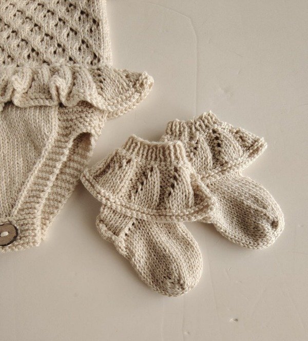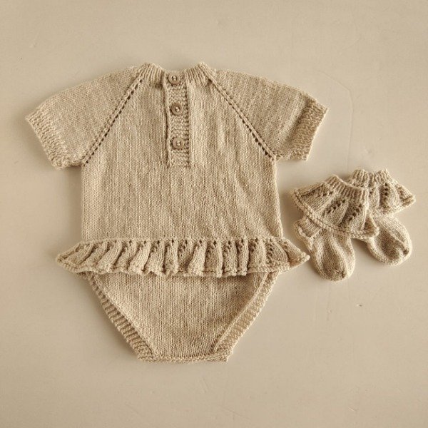 Body y medias con volados tejidos con suave aldodón para bebés de 1a3 meses