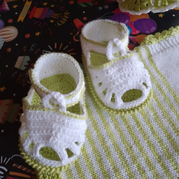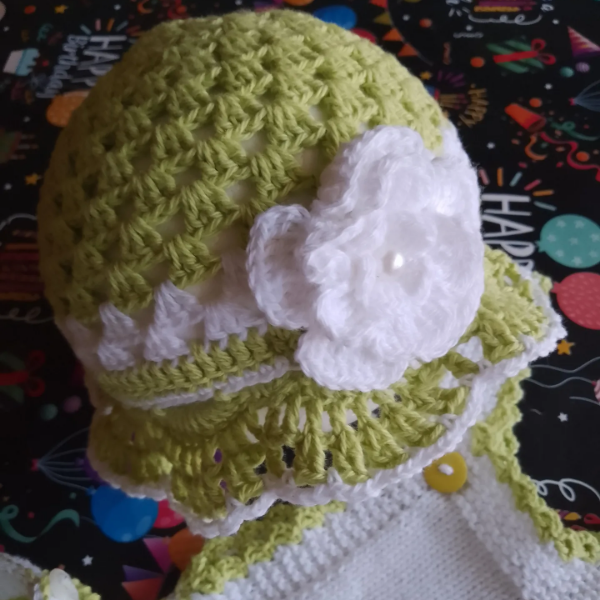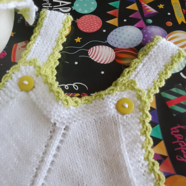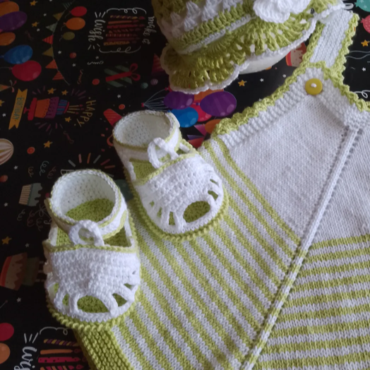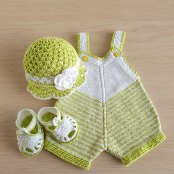Conjunto playero Martina, tejido en algodón compuesto por jardinero, capelina y sandalias