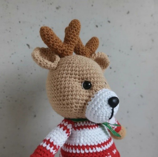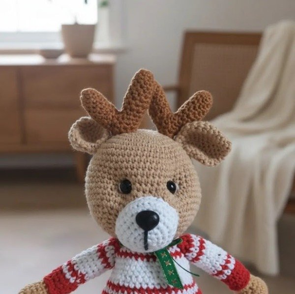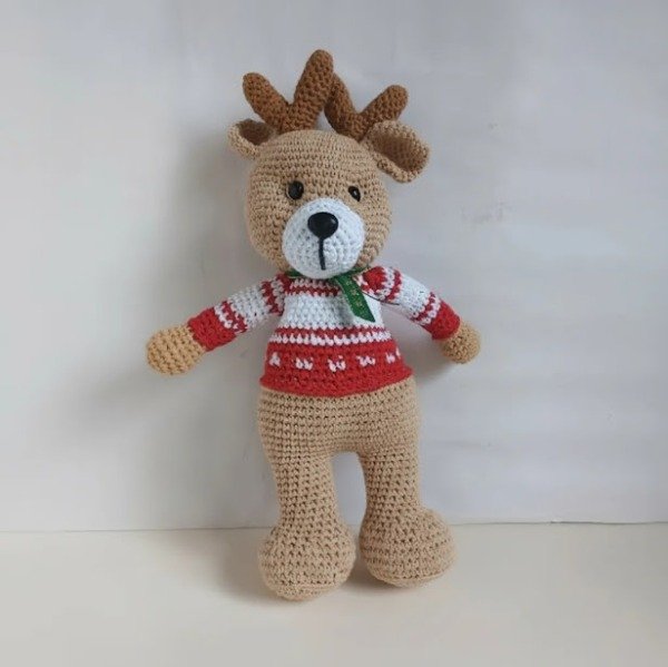 Adorno navideño "Reno grande" Tejido al crochet en algodón. Medidas: 35cm x 26cm
