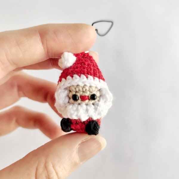 Mini Papá Noel tejido a crochet. Adorno para el árbol de navidad o colgante de celular. Medidas del colgante entero: 9,5 cm x 2,5 cm