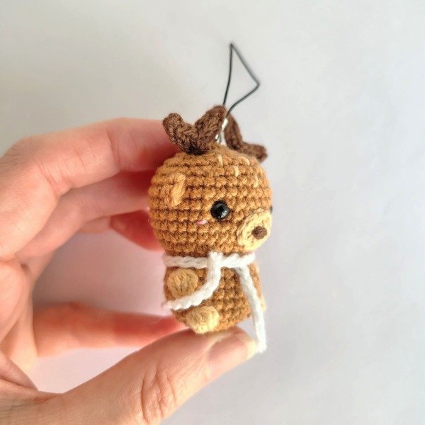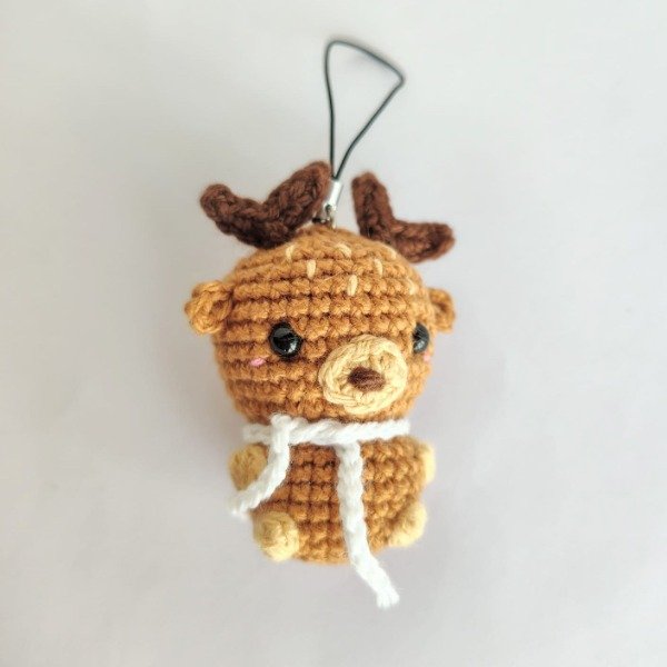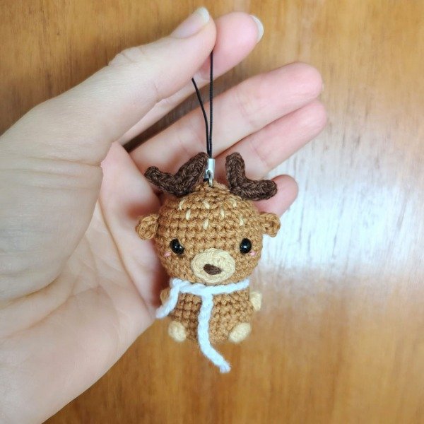 Mini reno navideño tejido a crochet. Adorno para el árbol de navidad o colgante de celular. Medidas del colgante entero: 10 cm x 4,5 cm