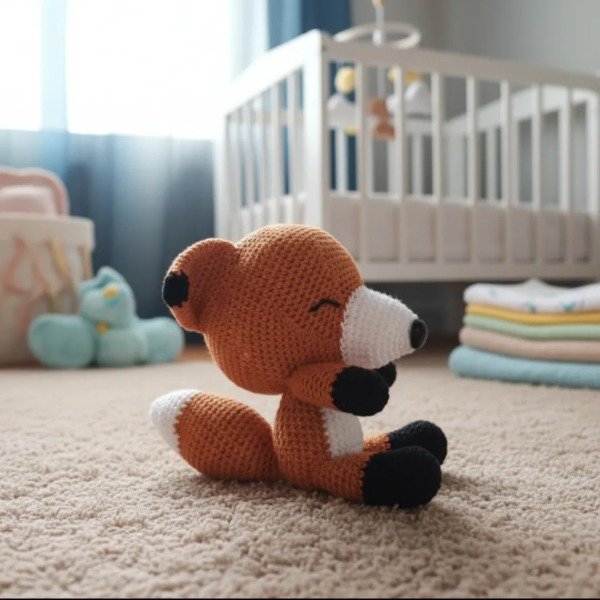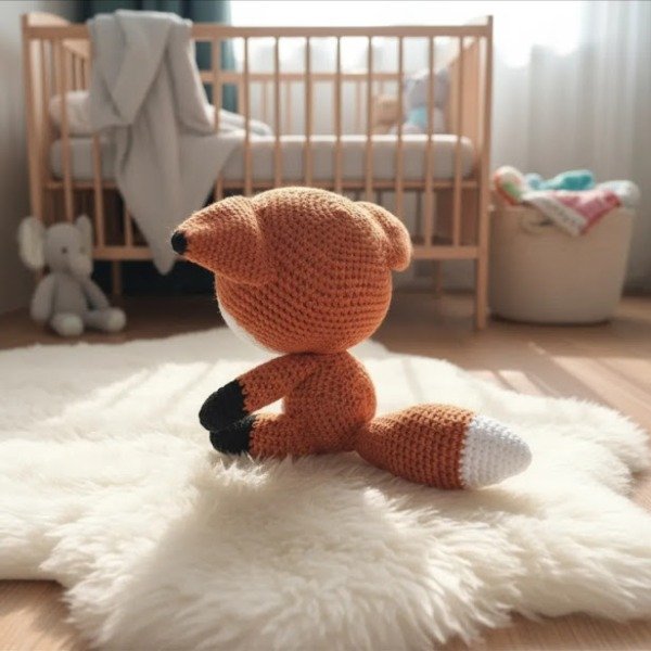 Juguete amigurumi para bebés "Zorrito" Tejido en algodón suave. Medidas: 12cm de alto, 9cm de ancho y 15cm de profundidad.