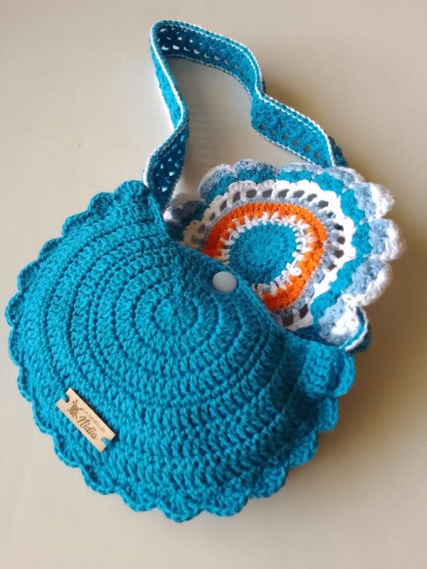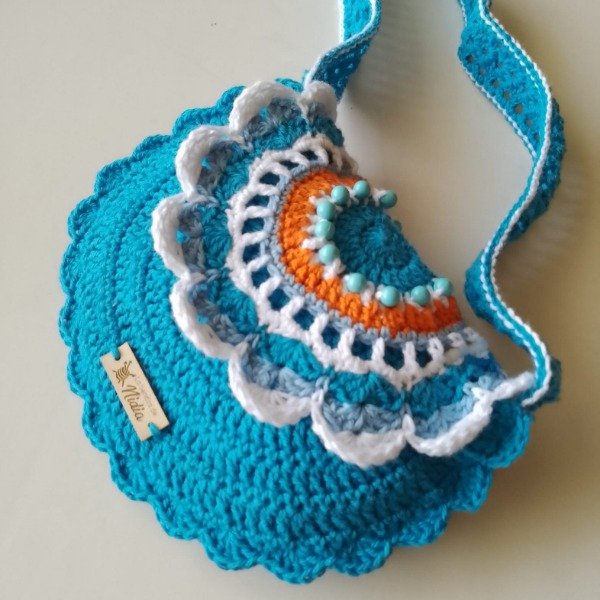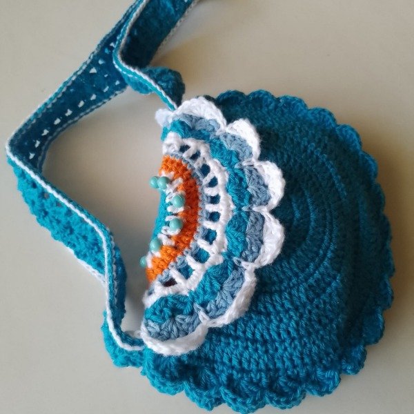 Cartera bandolera colorida para niñas, tejida a crochet en hilo de algodón.