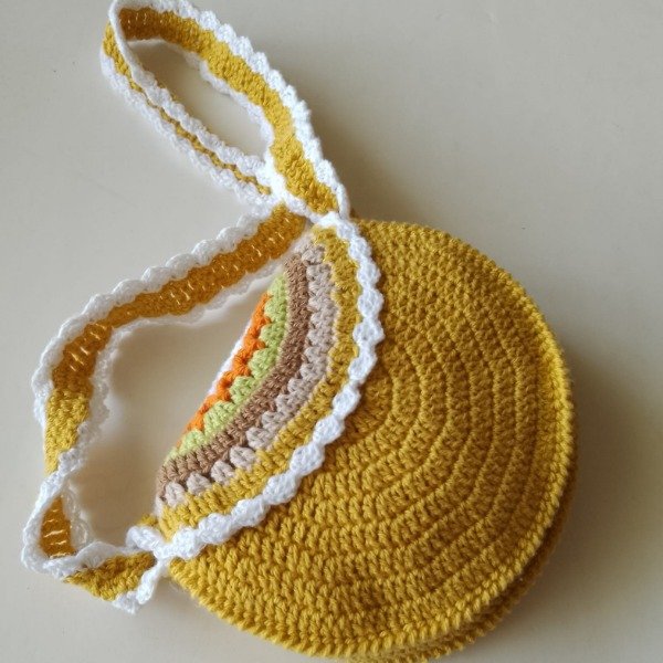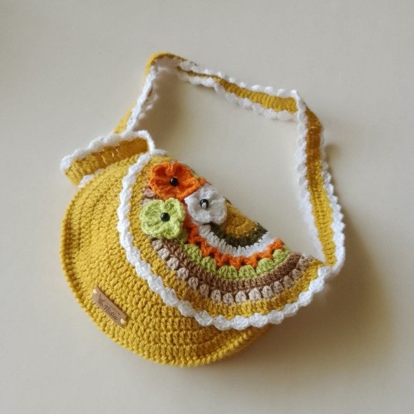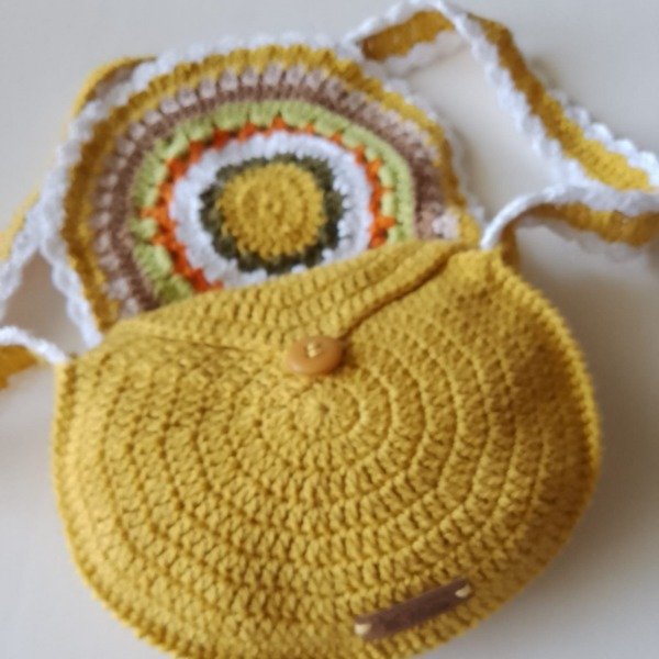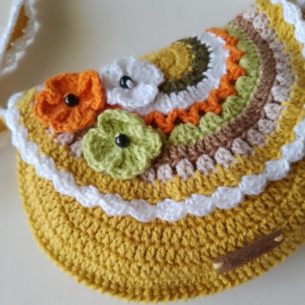Cartera bandolera mostaza para niñas tejida crochet