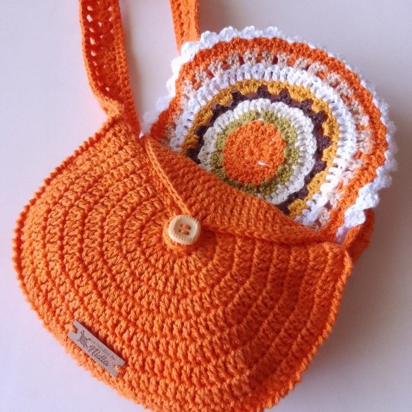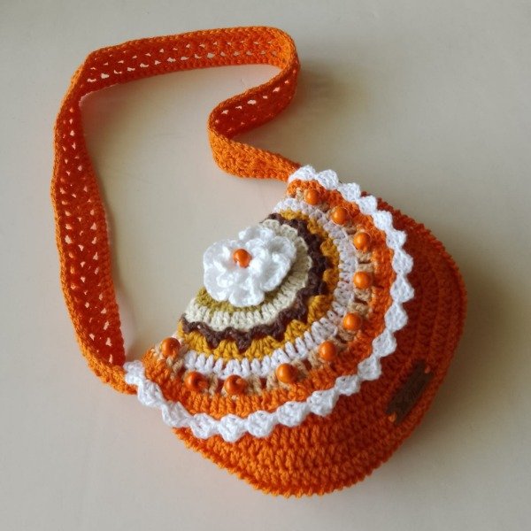 Cartera bandolera colorida para niñas, tejida a crochet en hilo de algodón.