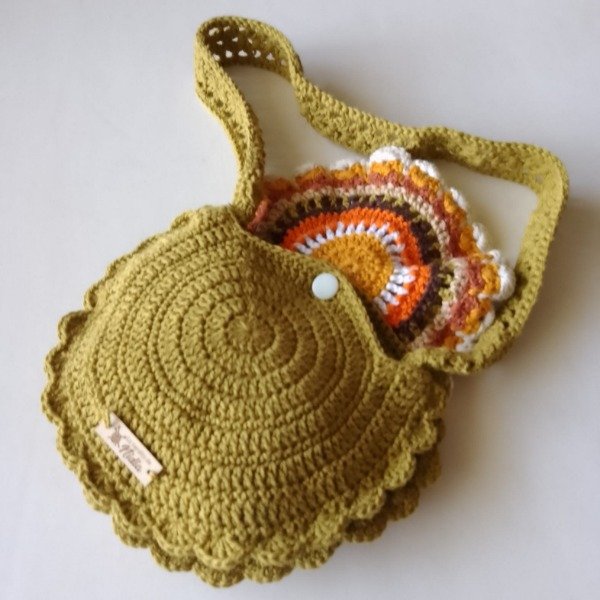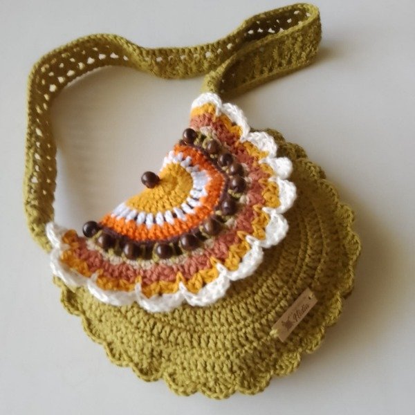 Cartera bandolera verde muzgo para niñas tejida crochet