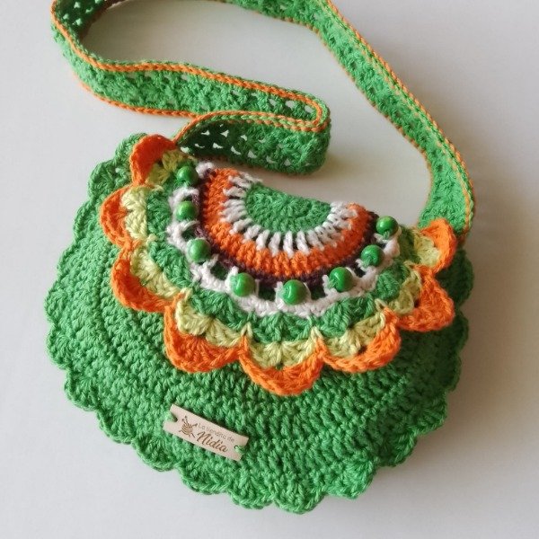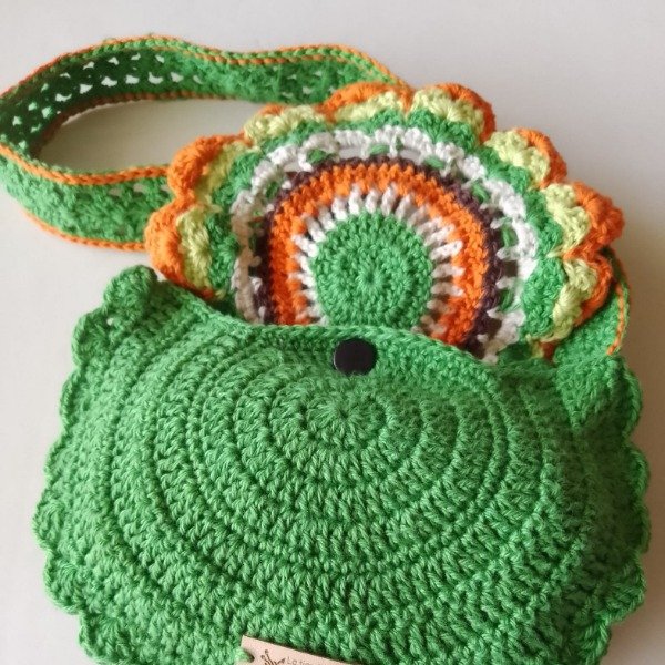 Cartera bandolera colorida para niñas, tejida a crochet en hilo de algodón.