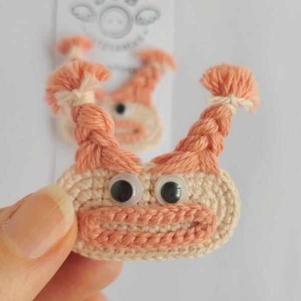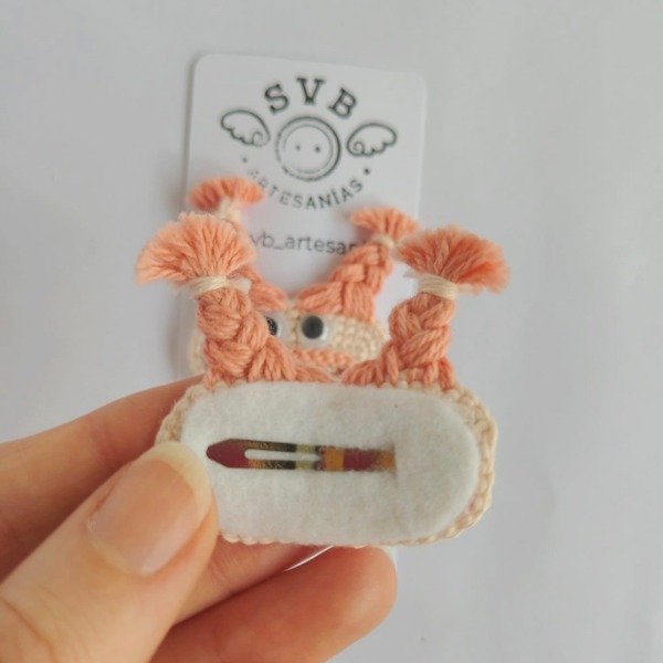 Par de hebillas para el pelo de boca de salchicha tejidas a crochet. Ideal para niñas. Medidas de cada hebilla: 5 cm x 4,5 cm.