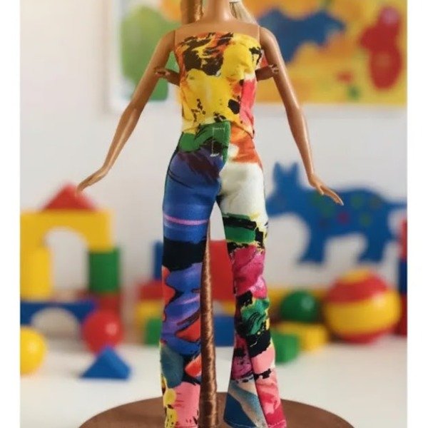 Conjunto de top y pantalón con carterita para muñecas articuladas.